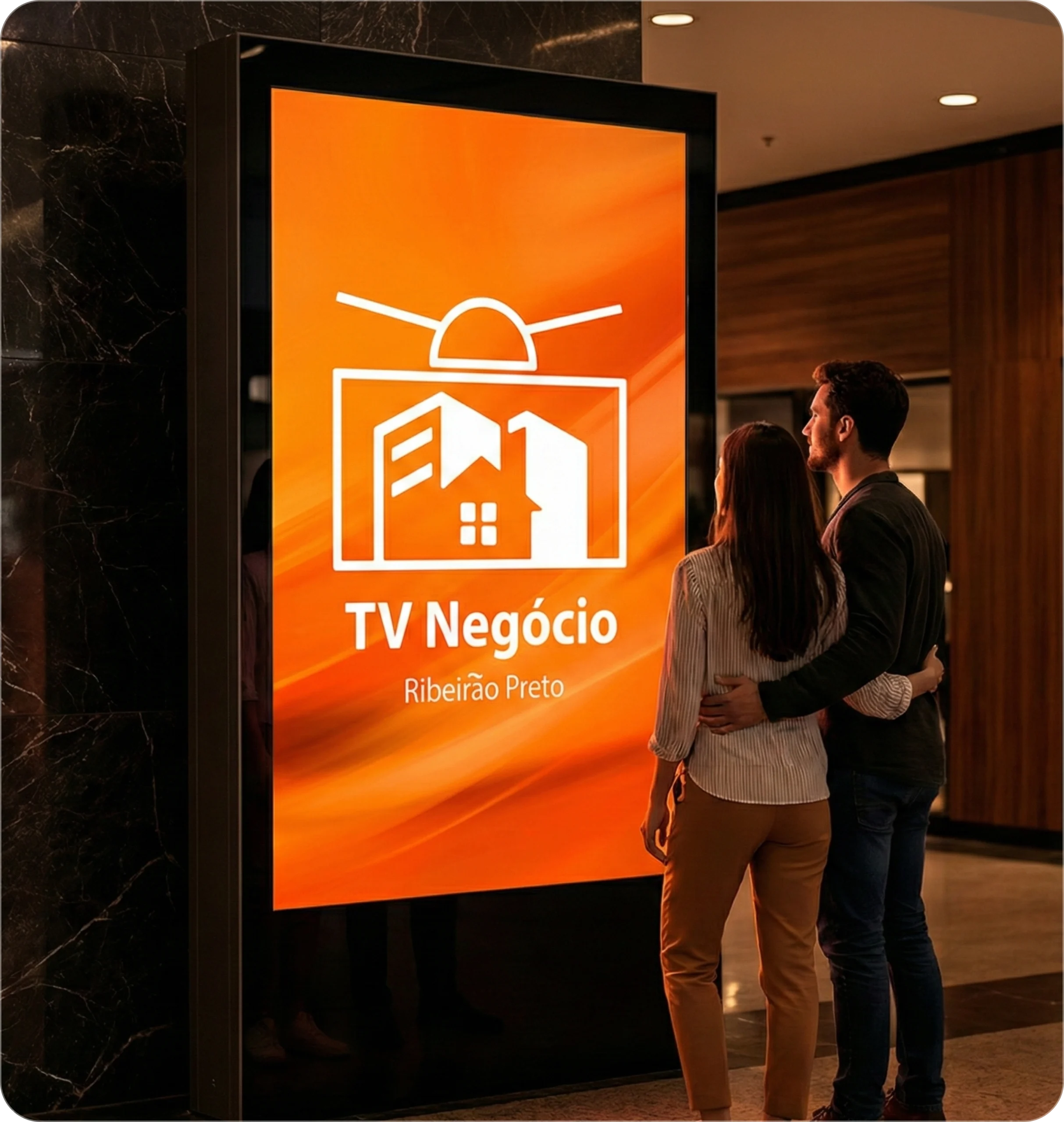 Somos a TV Negócio, um circuito integrado de comunicação visual corporativa que opera telas em elevadores e totens em recepções dos prédios mais nobres de Ribeirão Preto.